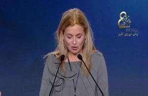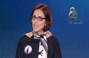 يشرفني أن أتواجد اليوم معكم بمناسبة اليوم العالمي للمرأة. أغتنم هذه الفرصة من هذا المنبر لتثمين النضال المستمر للشعب الإيراني ضد الاضطهاد وضد التطرف الديني. كما نحيي المعارضه المتعاظمة التي تقوم بها النساء الإيرانيات سواء داخل إيران أو خارجها ونطالب من هذا المنبر برفع الحيف من على كل النساء المضطهدات. وأقول إن كل النساء الحاضرات هنا في هذا اللقاء الدولي المتميز ومن مختلف أنحاء العالم كل واحدة منهن تحمل معها مئات بل آلاف الأصوات والمطالب النسائية لكل النساء المضطهدات والمقهورات ضحايا التطرف وضحايا العنف والاستبداد.