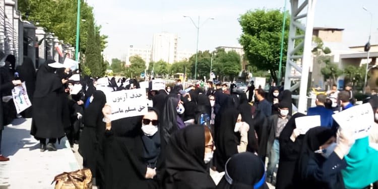 يوم الاثنين 4 مايو 2020، نظم معلمو حركة مكافحة الأمية من مختلف المدن والمحافظات تجمعًا احتجاجيًا أمام مبنى مجلس شورى الملالي للاحتجاج على عدم متابعة مطالباتهم.