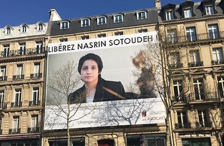 وتجدر الإشارة إلى أن نقابة المحامين الفرنسية قد دعت مؤخرًا إلى إطلاق سراح، السيدة «نسرين ستوده» ونصبت صورتها الكبيرة في مبنى النقابة في باريس. وأعلن نقيب المحامين الفرنسيين في مقابلة مع إذاعة صوت أمريكا: «يقف جميع المحامين الفرنسيين بجانب نسرين ستوده. لقد أدينت هذه المحامية الإيرانية بأكثر العقوبات غيرالمقبولة في القرن الحادي والعشرين ، فقط لكونها محامية».