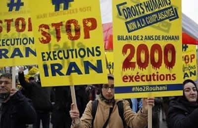 در تظاهراتی در مقابل وزارت‌خارجه فرانسه، تظاهر کنندگان فریاد می‌زدند روحانی دیکتاتور، مرگ، مرگ بر روحانی.