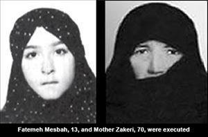 Partout en Iran sous les mollahs, les droits des femmes étaient devenus la moitié de ceux des hommes, sauf dans les prisons où elles avaient une double ration de torture uniquement parce qu’elles étaient femmes. Les mollahs misogynes ne pouvaient tolérer les femmes qui s’opposaient à eux. Parmi les victimes de cette époque figuraient Nafisseh Achraf Jahani, 10 ans, qui a été jugée dans un simulacre de procès et envoyée devant un peloton d’exécution. Maryam Assadi, 11 ans, Afsaneh Farabi, 12 ans et Fatemeh Mesbah, Shahla Ghorbani et Fatemeh Sajedi, âgées de 13 ans, Fatemeh Jabbarzadeh Ansari et Nassrin Nouri Mani, âgées de 15 ans, ont notamment été exécutées dans les années 1980. Tahereh Aghakhan Moghaddam a été exécutée alors qu’elle était enceinte de huit mois. Les noms d’au moins 62 femmes enceintes figurent parmi les personnes exécutées par le régime iranien. Des dizaines de femmes âgées, comme Sakineh Mohammadi Ardehali (Mère Zakeri), 70 ans, se sont dressées courageusement contre les mollahs et n’ont jamais plié.