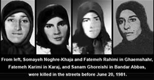 Sur la base des conclusions de la résistance iranienne et les informations publiées dans la presse officielle, des dizaines de collégiennes qui soutenaient la principale opposition démocratique, l’OMPI avaient été tuées et blessées dans les attaques des agents et des matraqueurs du régime dans les deux années et demi qui avaient précédé ce 20 juin 1981 : Nasrine Rostami à Chiraz, Mehri Saremi à Khorramabad, Sima Sabbagh à Racht, Sanam Ghoreichi à Bandar-Abbas, Fatemeh Rahimi et Somayeh Noghreh-Khaja à Ghaemshahr et Fatemeh Karimi à Karadj ont perdu la vie pour avoir refusé de se soumettre à la dictature religieuse.
