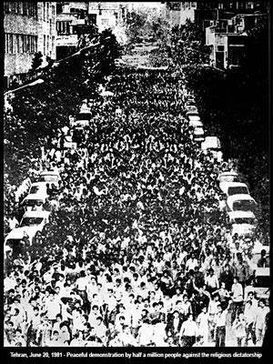 Le 27 avril 1981, l’association des mères musulmanes qui soutenait l’OMPI a organisé une manifestation pour protester contre le passage à tabac et l’arrestation de leurs enfants. 200.000 femmes ont participé à cette manifestation. Leur forte présence a pris les mollahs par surprise et a eu un impact énorme sur l’évolution de cette période critique.