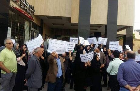 Elles se sont rassemblées dans la rue Navab Safavi et Razavi Sharestan le 8 mai 2018 pour protester contre le manque de transparence dans la distribution des actions appartenant à un projet de construction appelé Iman-e Machad.