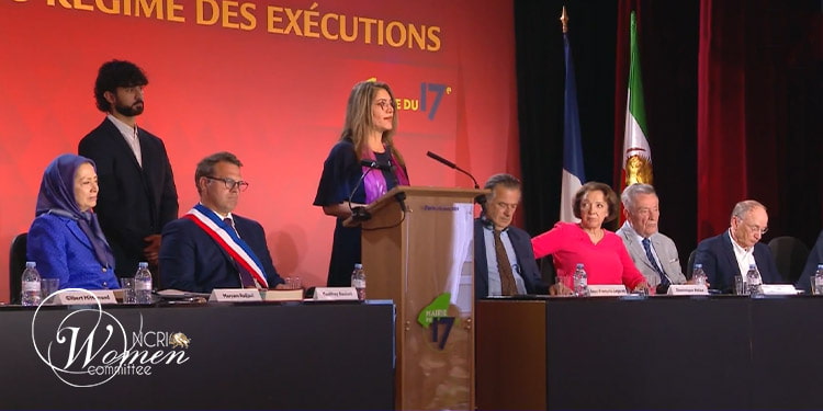 Le 30 août 2025, une conférence s’est tenue à la mairie du 17e arrondissement de Paris sous le titre « L’Iran se soulève contre le régime des exécutions », marquant l’anniversaire du massacre de 1988 des prisonniers politiques. Lors de cette conférence, Azadeh Alemi, qui, enfant, avait été emprisonnée avec sa mère, prisonnière politique, a prononcé un discours tandis que son fils se tenait derrière elle en signe de soutien à sa personne et à sa cause :