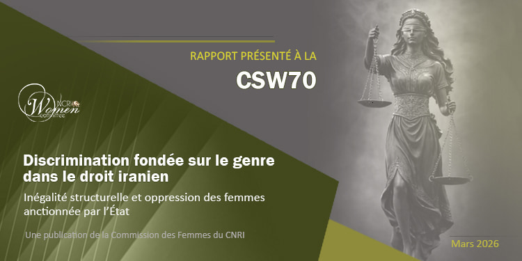 « Discrimination fondée sur le genre dans le droit iranien » est le titre du rapport du Comité des femmes du CNRI présenté à la CSW70. Il met l’accent sur la nécessité de « garantir et renforcer l’accès à la justice pour toutes les femmes et les filles, notamment en promouvant des systèmes juridiques inclusifs et équitables, en éliminant les lois, politiques et pratiques discriminatoires, et en s’attaquant aux obstacles structurels ».